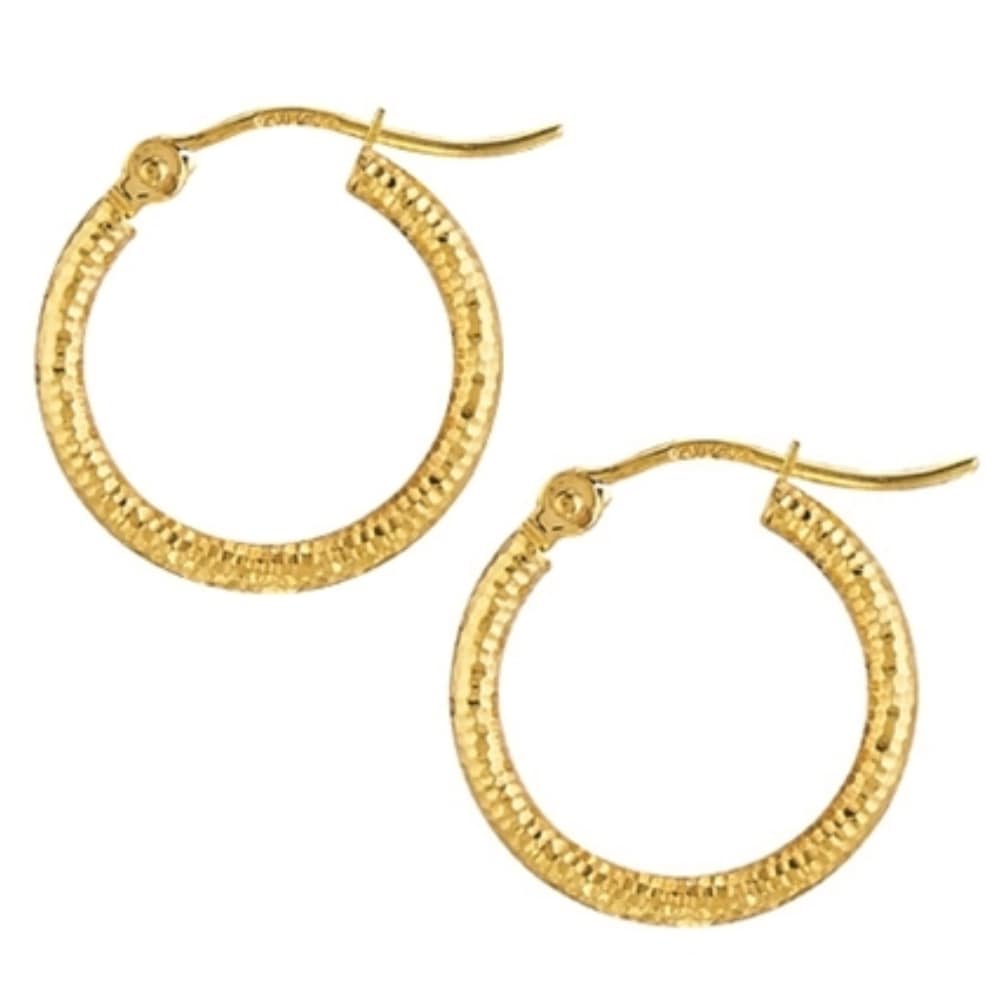 14kt Yellow Gold 2×15 mm Diamond Cut Hoop Earrings